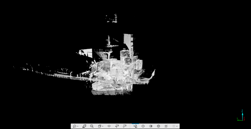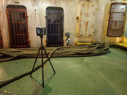 新加坡貨輪掃描現(xiàn)場,利用三維激光掃描儀對貨輪復(fù)雜結(jié)構(gòu)進(jìn)行3D掃描