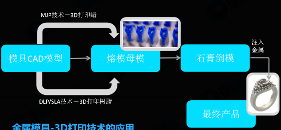 獲取三維數(shù)據(jù)(或三維掃描)——3D打印蠟?zāi)#ā止ぶ颇#N蠟樹——石膏制?!喑檎婵铡姹菏唷劢饾茶T——剝離石膏?!獩_洗、酸洗、清洗(——稱重)——修毛坯,拋光等后處理——產(chǎn)品——檢測