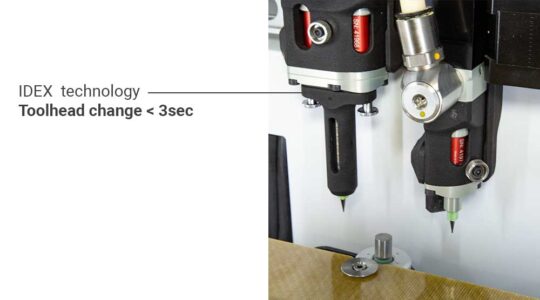 S300X-LIQ21LIQ11采用IDEX(獨(dú)立雙擠出)技術(shù)設(shè)計(jì),配置單組份和雙組份工具頭,LIQ21用于擠壓雙組分材料,LIO11 用于擠壓?jiǎn)谓M分材料。特別是完全可溶的支撐材料,能夠打印復(fù)雜的幾何形狀,對(duì)形狀沒(méi)有限制。